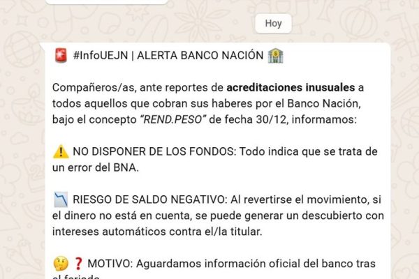 Falla Técnica Sorprende a Clientes del Banco Nación en Fin de Año La última jornada de 2025 dejó una situación…