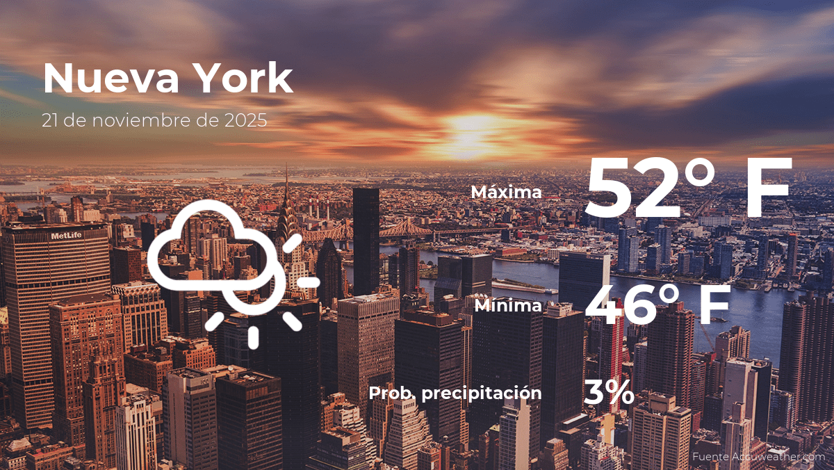 Los pronósticos locales indican un día mayormente soleado en Las Vegas con probabilidad de lluvia del 0%. Durante la mañana se espera una temperatura cercana a 13°C. Para el mediodía, el mercurio subirá hasta alrededor de 28°C, con una sensación térmica estimada en 26°C. Por la noche se prevé una temperatura de 22°C y viento moderado, con velocidades alrededor de 5 km/h.