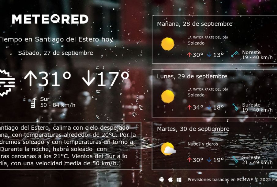 La provincia de Santiago del Estero se caracteriza por su clima continental, con temperaturas que pueden superar los 40°C en verano. A lo largo de octubre, las temperaturas han comenzado a aumentar, marcando el inicio de la temporada estival. Según los informes del Servicio Meteorológico Nacional, en las últimas semanas, se registraron temperaturas máximas de 37°C, y se prevé que esta tendencia continúe en los próximos días.