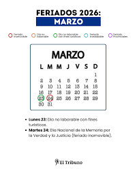 Según la cobertura de medios, entre ellos La Nación, el calendario 2026 con los feriados confirmados incluye los días no laborables de marzo y explica cuáles son feriados inamovibles y cuáles podrían cambiar de día. Ese desglose también contempla los fines de semana largos y los asuetos que se esperan durante el año, lo que facilita la planificación anual.