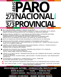 En paralelo, otras organizaciones que integran la protesta son CTERA y sindicatos afines a la CGT, que también convocaron a la medida para el lunes 2 de marzo. Entre los reclamos comunes figuran la denuncia del ajuste en educación y la preocupación por la caída de los salarios docentes. Antes de la huelga del 2 de marzo se realizaron movilizaciones, entre ellas una activación del Frente de Sindicatos Unidos y una convocatoria a movilización el 19 de febrero a las 12 horas.